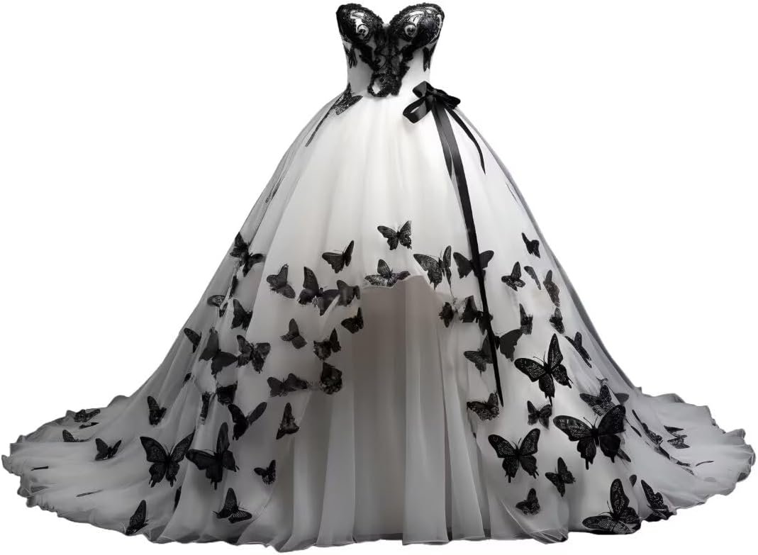 - Feature:Gothic sweetheart wedding dresses with black 109d butterfly for bride, sequin tulle bridal gowns with train, plus size wedding dress.If you choose this dress, it will make you shine at your wedding!