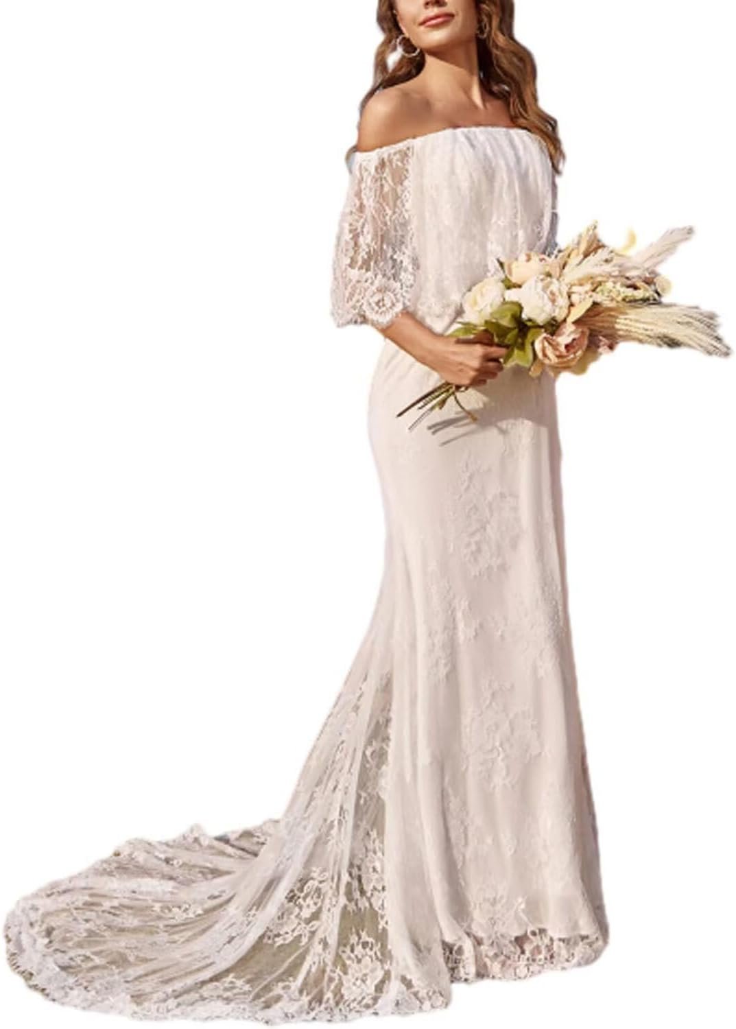 - Design:Elegant lace beach wedding dresses for bride Black, bohemian wedding dress for women 2025, lace boho wedding gown for bride,off shoulder country wedding dress for bride with train,a line beach bridal dress wedding gowns for women, bulit-in bra,zipper back closure.