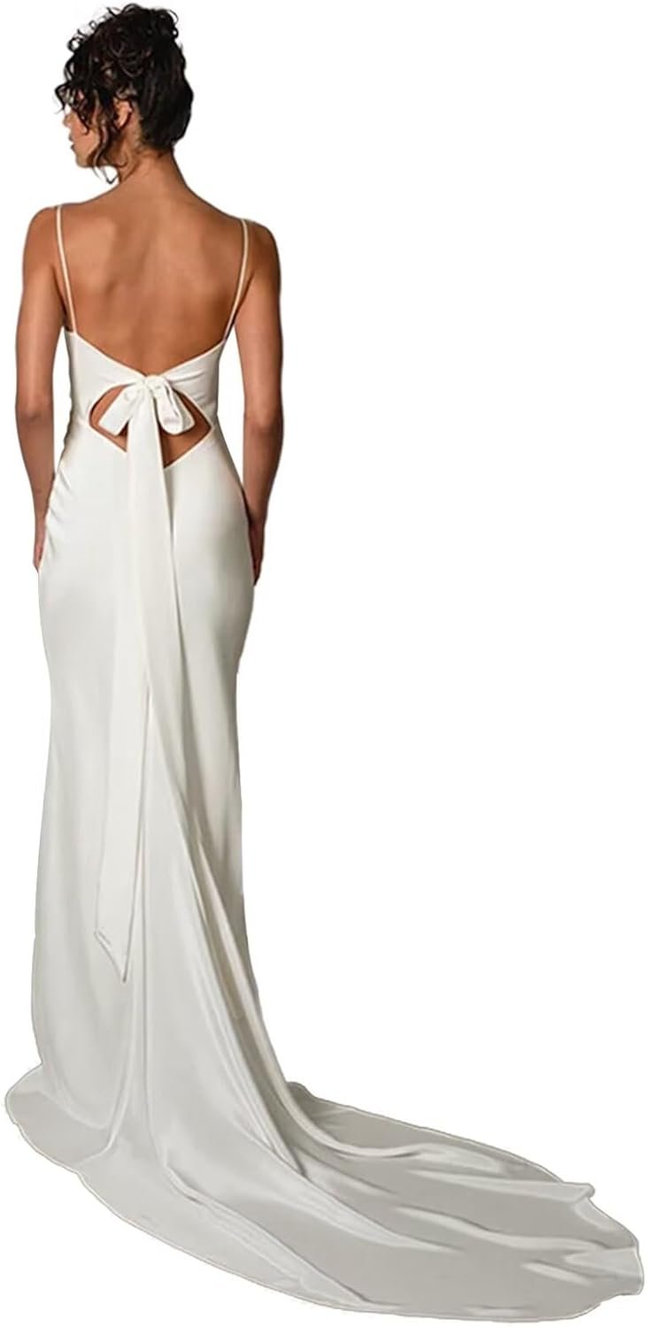- Features: mermaid boho wedding dress,Sleeveless bridal gowns for women, beach satin wedding gowns for women 2025,sweep train bridal gown,spaghetti straps wedding dress