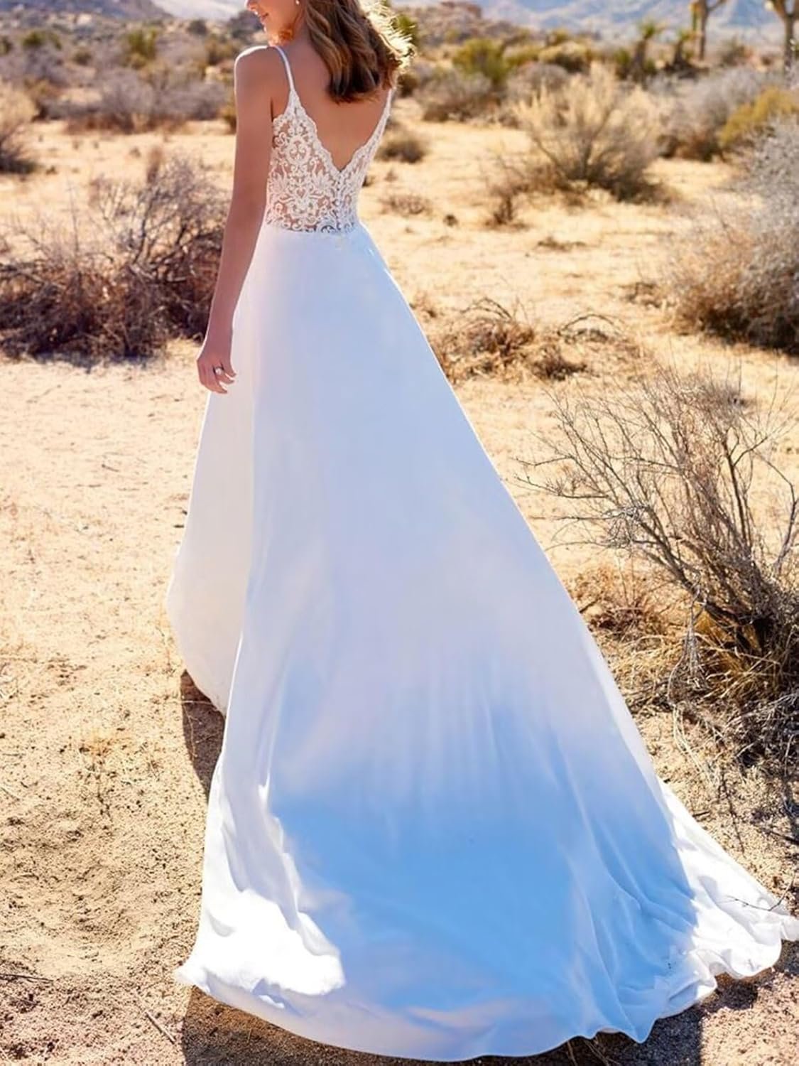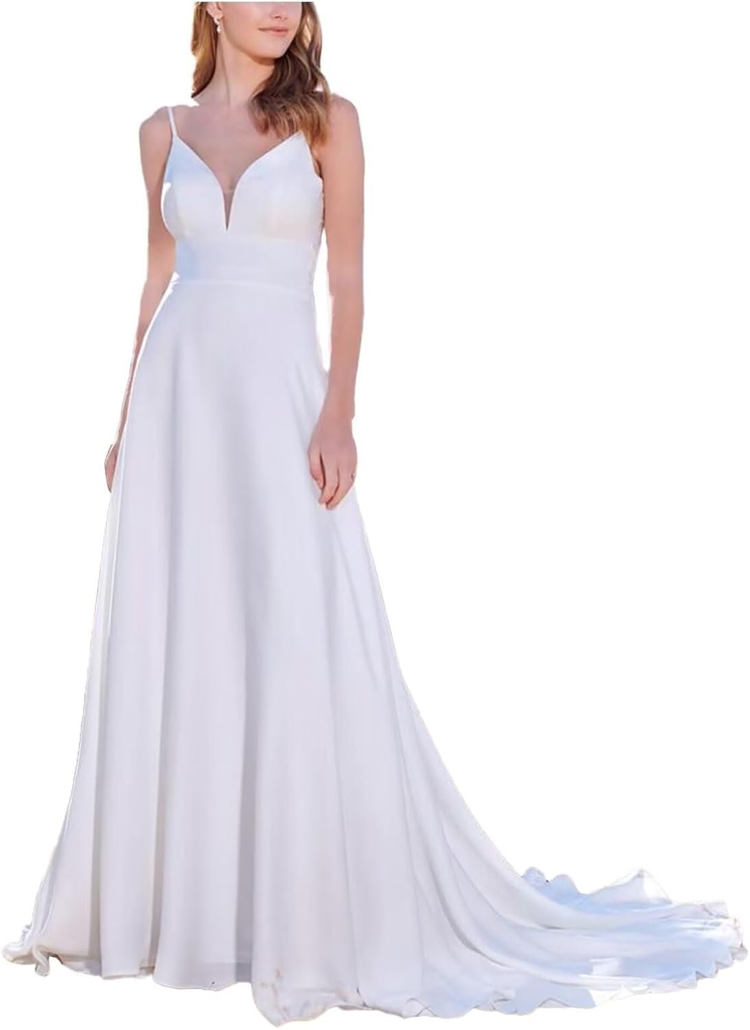 • Unique Features: white wedding dresses for bride ,v neck chiffon simple wedding dress,spaghetti straps ,backless,a line floor length bridal dress, reception dress for bride,lace up back, built in bra,make each bride likes a queen