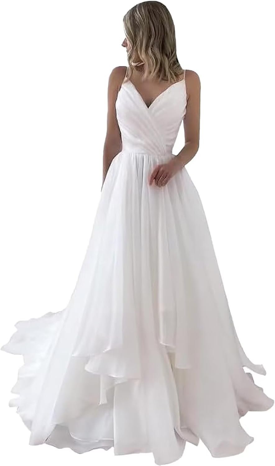 - Unique Features: white wedding dresses for bride ,v neck chiffon simple wedding dress,spaghetti straps ,backless,a line floor length bridal dress, reception dress for bride,lace up back, built in bra,make each bride likes a queen